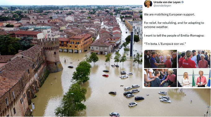 President von der Leyen visited Emilia-Romagna on May 25 and again in January 2024. This slide shows a tweet she posted during her first visit. The EU offered Civil Protection Assistance, Satellite Mapping Support (Copernicus), financial Aid for reconstruction (for example via the EU Solidarity Fund). As the President said in the tweet, it is important to provide “relief” and to “rebuild”, of course.